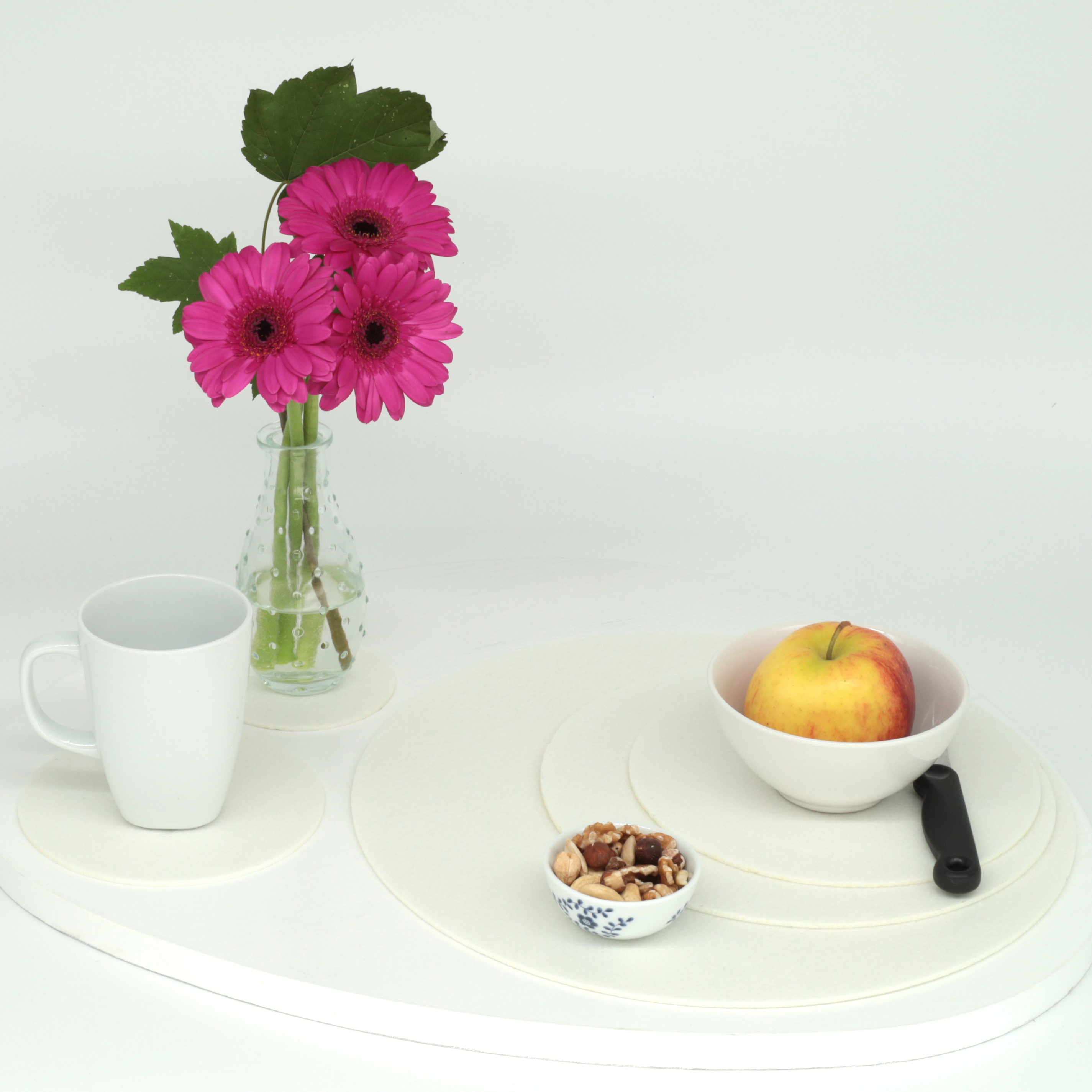 VIELFÄLTIG EINSETZBAR: Benutzen Sie die Filz-Untersetzer auch für Vasen, Tassen Gläser oder Flaschen. Durch das minimalistische Design von biasto mit klaren Linien und moderner, passender Farbauswahl beweisen Sie Geschmack und ihre Liebe zum Detail bei der Tischdekoration.